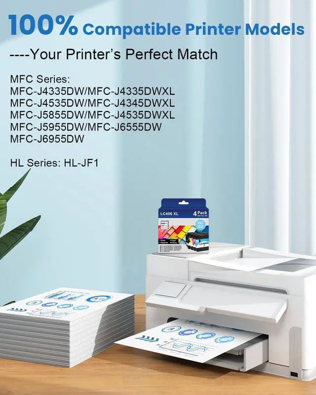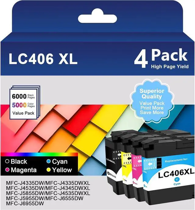 This ItemLC406 LC406XL Ink Cartridges for Brother Printer LC406 LC406XL Compatible with Brother MFC-J4335DW MFC-J5855DW MFC-J6555DW MFC-J4535DW MFC-J6955DW MFC-J4345DW MFC-J5955DW (B/C/Y/M) 4PackRecommendationsLC406XL LC406 Ink Cartridges Compatible for Brother LC406 XL 406XL for MFC-J4335DW MFC-J5855DW MFC-J6555DW MFC-J4535DW MFC-J6955DW MFC-J4345DW MFC-J5955DW Printer, Black Cyan Magenta Yellow, 4-Pack LC406 Ink Cartridges Replacement for Brother LC406 LC 406 LC406XL Ink Cartridge Compatible with MFC-J4335DW MFC-J5855DW MFC-J4535DW MFC-J6555DW MFC-J6955DW Printers (4 Pack, BK/C/M/Y) LC406 Ink Cartridges Compatible for Brother LC406 Ink Cartridges LC406XL LC 406 406XL for Brother MFC-J4335DW MFC-J5855DW MFC-J4535DW MFC-J6555DW MFC-J6955DW Printer (4 Pack) LiTuhorse 4-Pack LC406 Ink Cartridges for Brother Printer, Compatible with Brother MMFC-J4335DW MFC-J4345DW MFC-J4535DW MFC-J5855DW MFC-J5955DW MFC-J6555DW MFC-J6955DW LC406 Ink Cartridges Compatible for Brother LC406XL LC406 High Yield Work with Brother MFC-J4535DW MFC-J4335DW MFC-J5855DW MFC-J6555DW MFC-J6955DW Printer(Black, Cyan, Magenta, Yellow, 4 Pack)