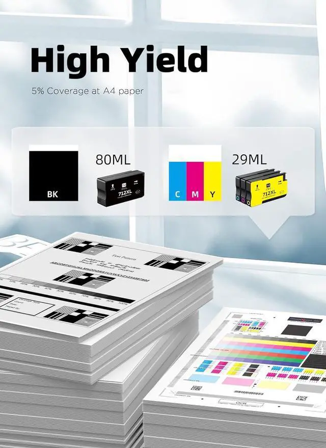 712XL Ink Cartridges High Yield Compatible Replacement for HP 712XL 712 XL 712 Ink Cartridges Combo Pack for HP DesignJet T210 T630 T650 T250 T230 Printer (4 Pack, 1BK/1C/1M/1Y)