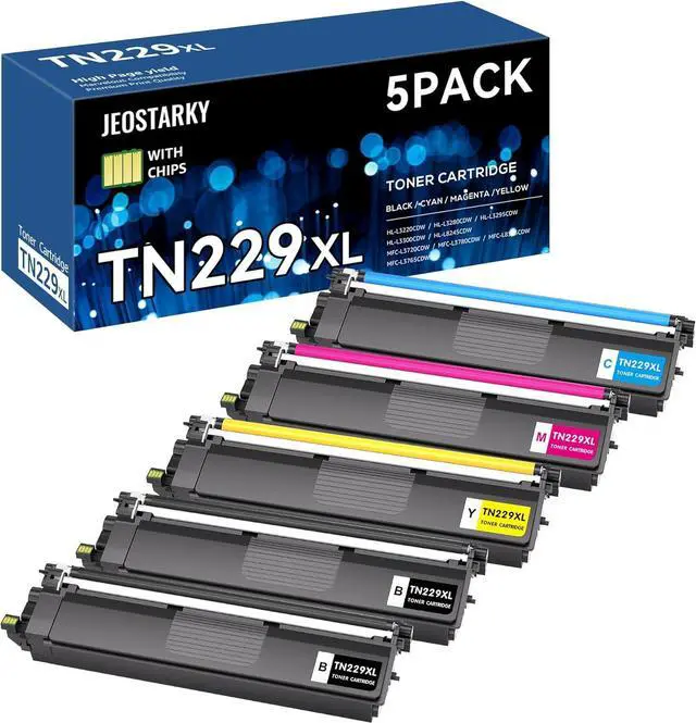 Jeostarky TN229XL TN229 Toner 5-Pack High Yield Replacement for Brother TN229 TN229XL Toner Cartridge Compatible with Brother MFC-L3780CDW MFC-L3720CDW HL-L3280CDW HL-L3220CDW HL-L3300CDW HL-L3295CDW