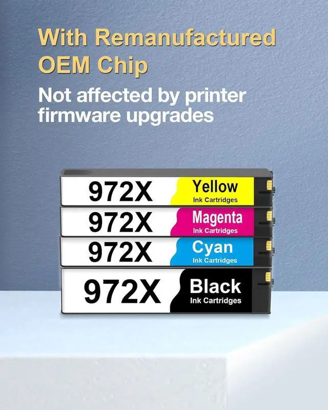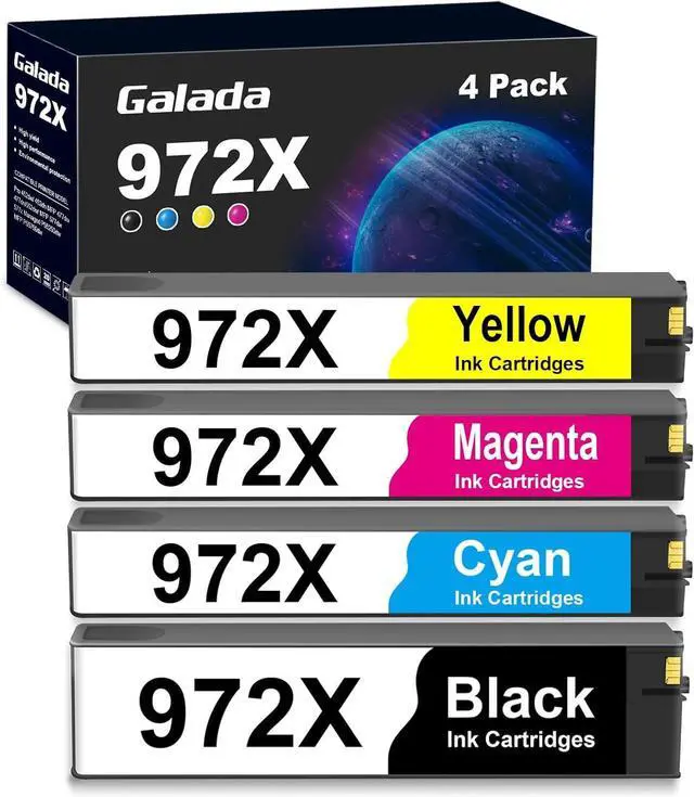 Package Contents: 1 Black 972X ink cartridge, 1 Cyan 972X ink cartridge, 1 Magenta 972X ink cartridge, 1 Yellow 972X ink cartridge