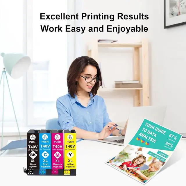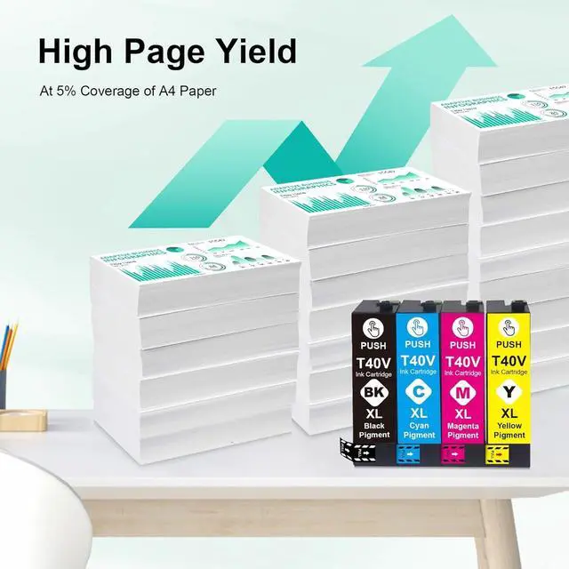 Color Packs: 4-Pack T40V1 Pigment Black and T40V2 T40V3 T40V4 Cyan Magenta Yellow Color high yield ink cartridge