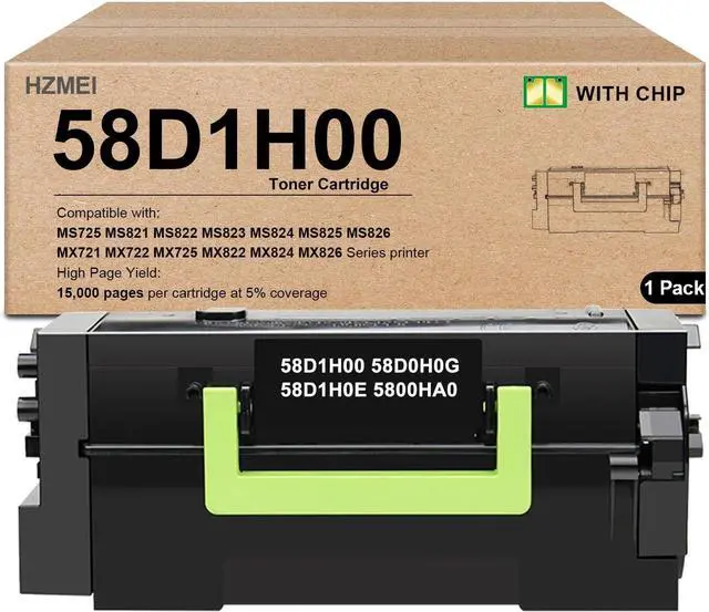 This Item58D1H00 Toner Cartridge High Yield 58D1H00 58D0H0G 58D1H0E 5800HA0 Toner for Lexmark MS725 MS821 MS822 MS823 MS824 MS825 MS826 MX721 MX722 MX725 MX822 MX824 MX826 Laser Printer 15, 000 PagesRecommendations58D1H00 Black High Yield Toner Cartridge (15, 000 Pages) Compatible Lexmark 58D1H00 58D0HA0 58D0H0G 58D1H0E Toner Use for MS725 MS821 MS822 MS823 MS824 MS825 MS826 MX721 MX722 MX725 MX822 MX824 58D1H00 Toner Cartridge High Yield (15000 Pages) Compatible with Lexmark 58D1H00 58D0HA0 58D0H0G 58D1H0E for MS821 MS822 MS823 MS824 MS825 MS826 MS725 MX721 MX722 MX725 MX822 MX824 MX826 Laser Printer K-ZIN 58D1H00 (15000 Pages) Black Toner Cartridge (with Chip) Compatible with Lexmark 58D1H00 58D1U00 58D1000 58D1X00 for MS823 MS725 MS821 MS822 MS824 MS826 MX721 MX722 MX725 MX824 Printer(Black, 1-PK) Print.