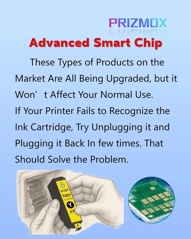 Package Contents: 4-Pack Remanufactured T40V Ink Cartridge (T40V120-Black, T40V220-Cyan, T40V320-Magenta, T40V420-Yellow)