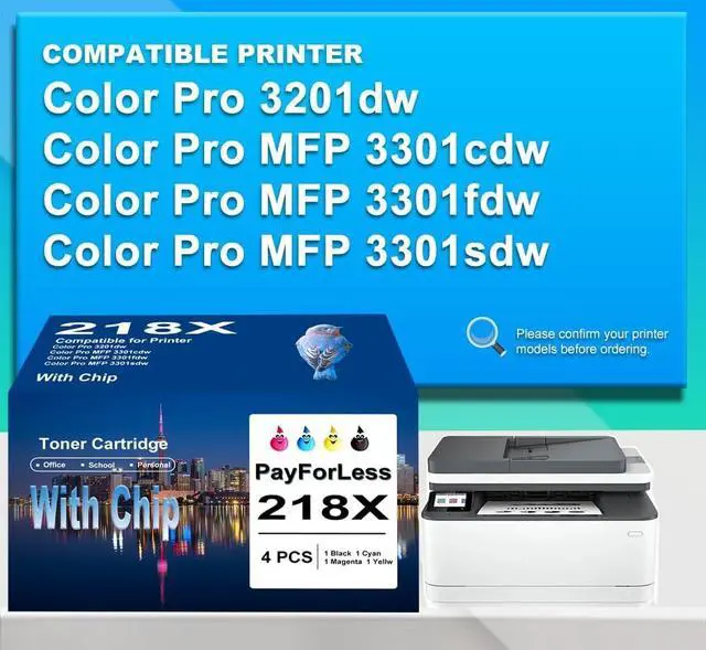 New Upgraded Chips218X Compatible for hp 218x toner cartridges 4 pack Replacement for hp color laserjet pro mfp 3301fdw