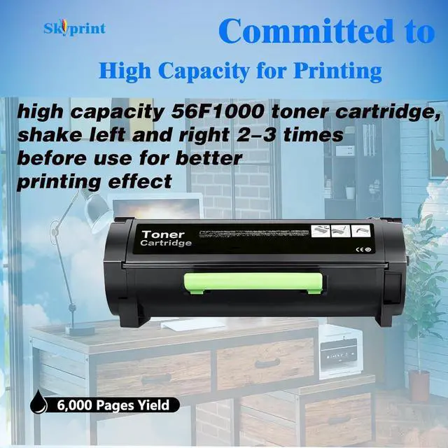 SkyPrint 56F1000 toner cartridges come with intelligent chips that automatically recognize and provide printin, Not damaging the machine,Shake the toner cartridge horizontally 2-3 times before use to evenly distribute the toner