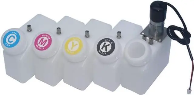 4 colors-CMYK, each bottle has a connection port to connect the 4mm*3mm or 4.2mm*2.8mm ink tube (will be equipped with a adapter 4mm to 2mm, can be transferred to 3mm*2mm ink tube)