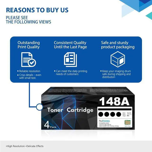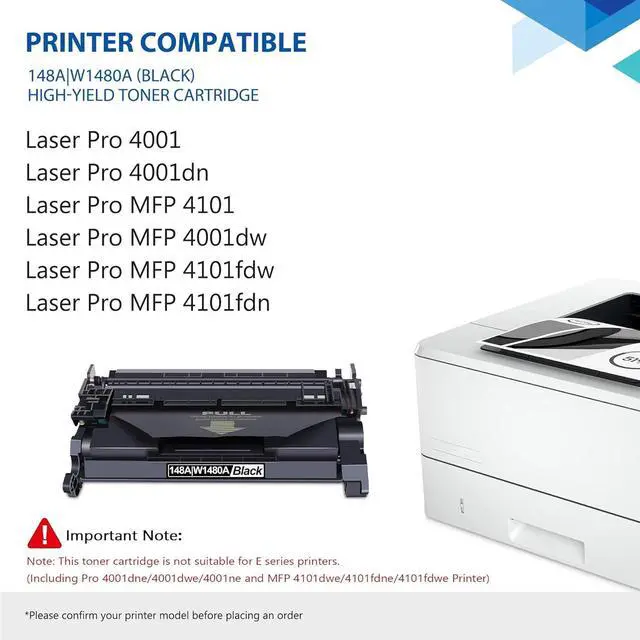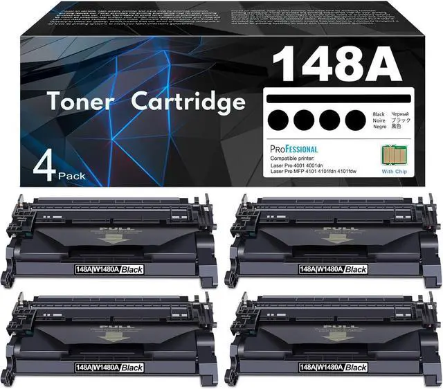 4-Pack 148A Black Toner Cartridge 148A 148X 4101fdw Toner Cartridge with Chip Compatible Replacement for HP 148A W1480A Laser Pro 4001 4001dn 4001dw, MFP 4101 4101fdn 4101fdw Printer Ink