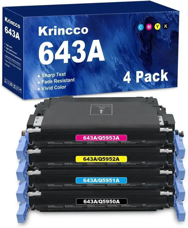 Krincco High Yield Remanufactured 643A Toner Cartridge Replacement for HP 643A Q5950A Q5951A Q5952A Q5953A for Color 4700DN 4700DTN 4700N 4700PH+ Printers (4-Pack)