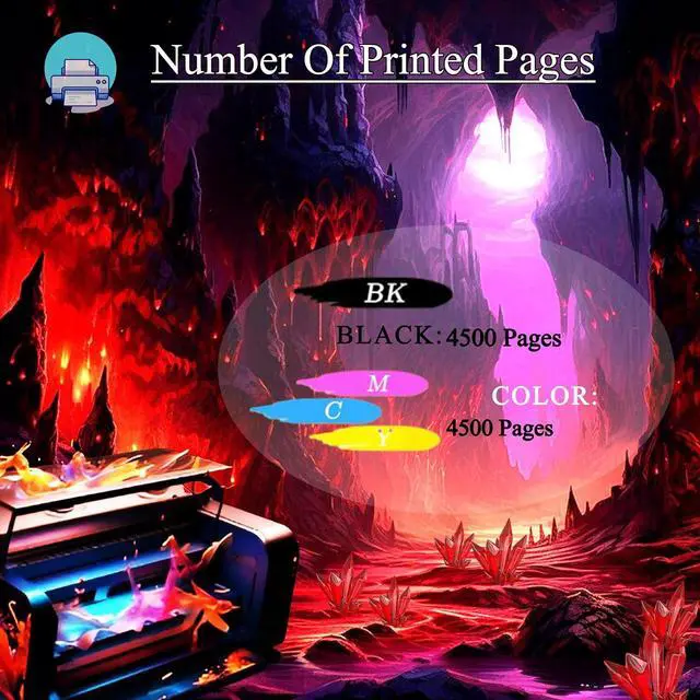 Multiple color options to solve small color matching problems. Black can print 4500 pages and color can print 4500 pages. (Letter/A4, coverage is 5%)