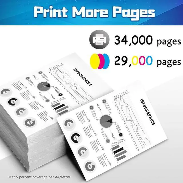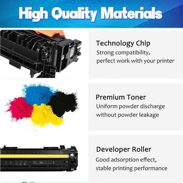 Compatible printers For HP Color LaserJet Enterprise MFP M776dn M776z M776zs M856dn M856x printers. Toner volumes 34,000 Pages per black toner cartridge and 29,000 pages per color toner cartridge(at 5% coverage on A4 papers). This provides exceptional value for money and reduces the frequency of cartridge replacements. Product Information: Each toner cartridge weighs 1kg and measures 38cm *10.5cm *13cm. Printing experience: This toner cartridge print is stably tested, provides outstanding results with clear fonts and realistic images, and ensures delivery of sharp text and vivid bright color. Warm Tip: 1.Since the models vary in different regions, please confirm your original toner cartridge model and printer model and send them to us. 2.Make sure not to touch the chip on the toner cartridge for optimal performance. 3.Please note that if prompted with a non-original message, simply click 'OK' or 'Continue' to proceed and start using the toner.