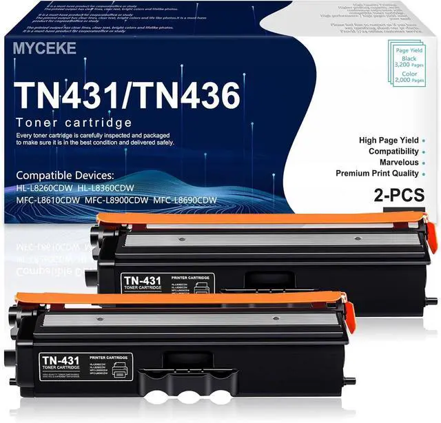 2 pack of TN431 TN 431 TN-431 toner cartridges (Black)