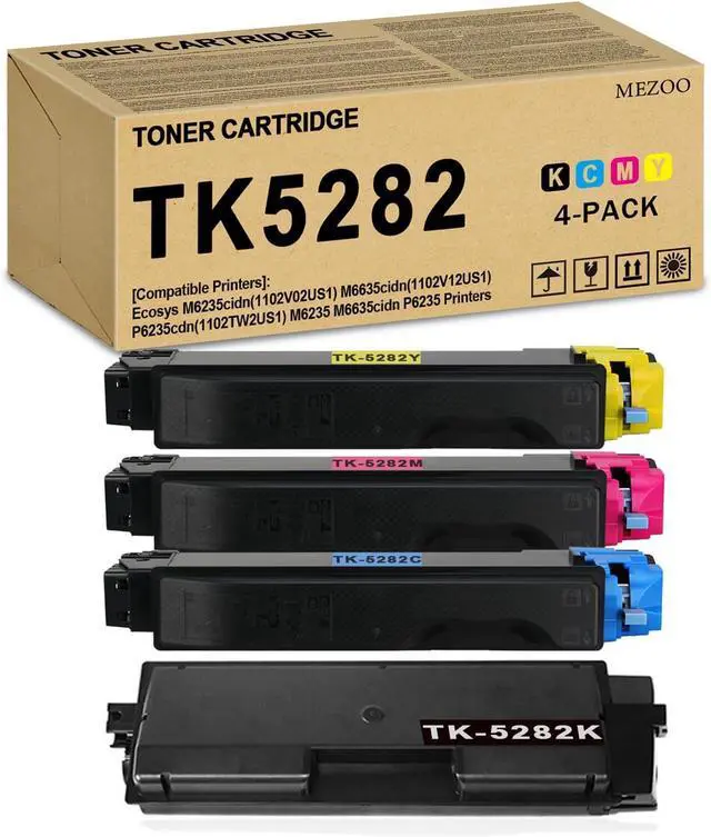 Package Contents:4 Pack TK5282 TK-5282 Toner Cartridge(1 Black 1 Cyan 1 Magenta 1 Yellow)