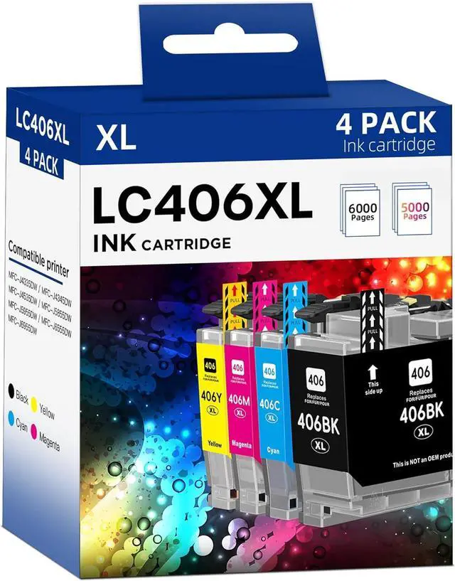 LC406XL Ink Cartridges High Yield Compatible for Brother LC406XL LC406 use to Brother MFC-J4335DW MFC-J4535DW MFC-J5855DW MFC-J6555DW MFC-J6955DW Printer (Black, Cyan, Magenta, Yellow, 4 Pack)