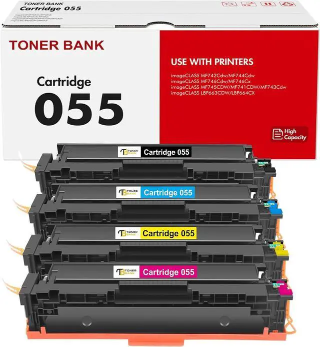 What's in the box: Toner Bank compatible toner cartridges replacement for Canon 055 055H Toner Cartridge Set
