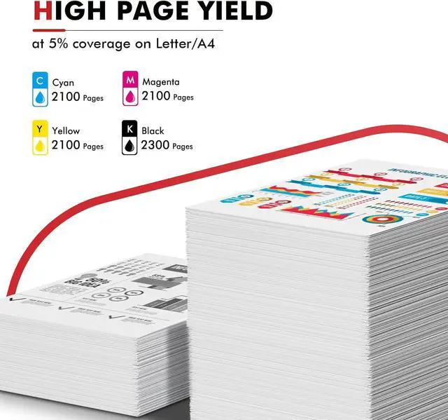 Page Yield: 2,300 pages (black toner) and 2,100 pages (color toner) at 5% coverage (Letter A4) compatible for Canon 055 toner cartridge