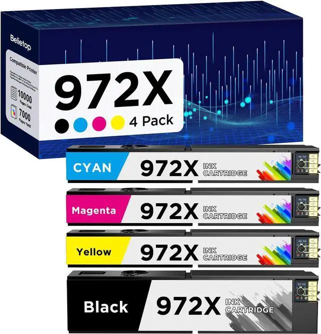 972X Ink Cartridges Compatible with 972X 972A 972 Ink Cartridges High Yield Work for HP Color PageWide Pro 477dw 477dn 577dw 452dn 577dw 552dn P55250dw Printer (B/C/M/Y, 4 Pack)