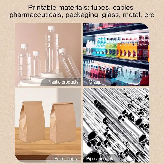Widely applicable materials: It works on almost any surface and can be widely used in absorbent or non absorbent materials such as cardboard, paper, wood, metal, ceramics, glass, fabrics, etc. The drying speed of ink varies depending on temperature and material.