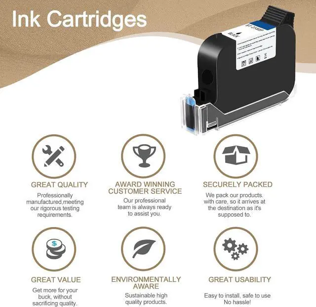 • 42ml Black Quick Dry Solvent Ink Cartridge Replacement forAll Handheld Inkjet Printers models
