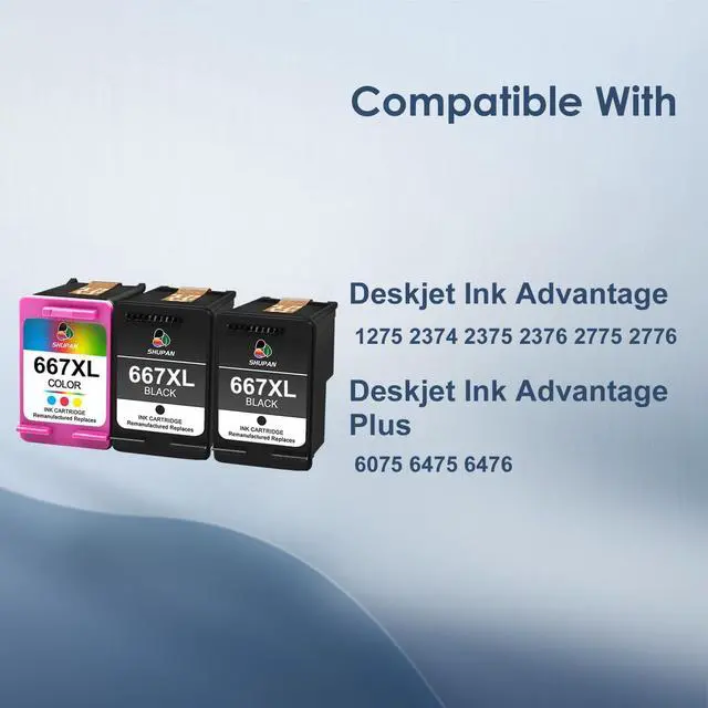 This Item667XL Ink Cartridge Black and Color Value Pack Replacement for HP 667XL 667 XL Ink Cartridges Work for HP DeskJet 1275 2374 2375 2376 2775 2776 6075 6475 6476 Printers (2 Black, 1 Tri-Color)Recommendations667XL Ink Cartridge Replacement for HP Ink 667XL Ink Cartridges Black and Color for DeskJet Ink Advantage DeskJet 1275 2374 2375 2376 2775 2776 6075 6475 6476 Printer (1 Black, 1 Color) ASANSH 667 667xl Ink Cartridge for 667XL Black and Color High Yield Ink Cartridge Use for Deskjet Ink Advantage 1275 2375 2775 Deskjet Ink Advantage Plus 6075 6475 6476 (2-Pack), small 667XL 667 XL 667 Ink Cartridges Replacement for hp 667 Ink cartridges Black and Color Work for Deskjet Ink Advantage 1275 2375 2775, Deskjet Ink Advantage Plus 6075 6475 6476 (2 Black) 667XL Ink Cartridges Black and Color Replacement for HP 667 XL 667 Ink Cartridges Work for Deskjet Ink Advantage 1275 2375 2775, Deskjet Ink Advantage Plus 6075 6475 6476 (1 Black, 1 Color) 667XL Ink Cartridge Black and Color Replacement for HP Ink 667XL Ink Cartridges for DeskJet Ink Advantage DeskJet 1275 2374 2375 2376 2775 2776 6075 6475 6476 Printer (1 Black, 1 Color)