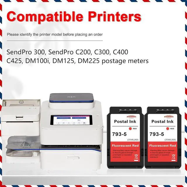This ItemMooxrbog 793-5 Ink Cartridge 35 ml Moxbog Replacement for Pitney Bowes 793-5 Red Ink Cartridge for DM100, DM200 and SendPro C and SendPro+, Red Ink, 2-Pack 35 mlRecommendationsPitney Bowes 793-5 Genuine Ink Cartridge for DM100, DM200 and SendPro C and SendPro+, Red Ink, 35 ml 2-Pack SL-793-5 Ink Cartridge Replacement for Pitney Bowes 793-5 Red Ink Cartridge for DM100, DM200 and SendPro C and SendPro+, Red Ink, 35 ml Mooxrbog SL-793-5 Ink Cartridge Moxbog Replacement for Pitney Bowes 793-5 Red Ink Cartridge for DM100, DM200 and SendPro C and SendPro+, 2-Pack Red Ink, 35 ml FIRSTINK High Capacity 2 Pack SL-793-5 Red Ink Cartridge Postage 793-5 Red Fluorescent Ink Cartridge Replacement for PB P700 DM100 DM100i DM125i DM150i DM175i DM200L DM225 Postage Meter (40ML) Cartridge Pros Compatible Ink Cartridge Replacement for SendPro C200, C300 and C400 Postage Meters, SL7980, Red, 3 Pack
