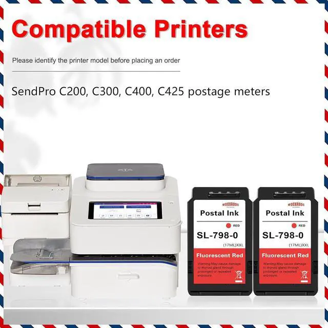 This ItemMooxrbog 2-Pack SL-798-0 Red Ink Cartridges (17 ml) for SendPro C200 C300 C400 C425 Postage Meters, Fluorescent Red Ink, 1500 Impressions, Refillable, Long-Lasting, Consistent Performance MaterialsRecommendationsPrizmox 2-Pack SL-798-0 Red Ink Cartridge Replacement for Pitney Bowes 798-0 Fluorescent Red Ink Cartridge for Postage Meters for Sendpro C200, C300 and C400 PB SendPro SL-798-0 Replacement Red Fluorescent Ink Cartridge for All SendPro Postage Meters 2-Pack SL-793-5 Ink Cartridge Replacement for Pitney Bowes 793-5 Red Ink Cartridge for DM100, DM200 and SendPro C and SendPro+, Red Ink, 35 ml Mooxrbog SL-798-0 Red Ink Cartridge Replacement for Pitney Bowes SL-798-0 Ink Cartridge Works with SendPro C200 C300 C400 C425 Postage and SendPro+, Red Ink, (3-Pack Red Ink, 17 ML) Cartridge Pros Compatible Ink Cartridge Replacement for SendPro C200, C300 and C400 Postage Meters, SL7980, Red, 3 Pack