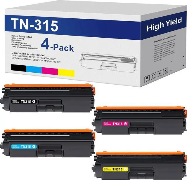 This ItemTN-315 TN315 Toner Cartridge 4 Pack Replacement for Brother TN 315 TN315 TN310 Toner Work with HL-4140CW HL-4570CDW HL-4570CDWT MFC-9560CDW MFC-9970CDW Printer (Black Cyan Yellow Magenta) RecommendationsTN-315 TN315 Toner Cartridge Compatible Replacement for Brother TN 315 TN315 TN310 Toner Work with MFC-9970CDW HL-4150CDNHL-4140CW HL-4570CDW Printer (Black Cyan Yellow Magenta) TN2293PK TN 229 Toner Cartridges Replacement for Brother MFC-L3720CDW MFC-L3765CDW MFC-L8395CDW MFC-L3780CDW HL-L3280CDW Printer (Cyan/Magenta/Yellow) greencycle 4 Pack Compatible Toner Cartridge Replacement for Brother TN315 TN336 TN310 Color Toner for HL-L8350CDW HL-4140CW MFC-L8600CDW MFC-9560CDW MFC-9970CDW Printer (Cyan, Yellow, Magenta, Black) INK E-SALE Compatible Toner Cartridge Replacement for Brother TN336 TN315 TN310 TN331(Black, 1-Pack), for use with Brother HL-L8350CDW HL-4150CDN MFC-L8850CDW MFC-9970CDW MFC-L8600CDW Printer TN315 Toner Cartridge: 5-pack High Yield 2TN315BK, TN315C, TN315M, TN315Y Replacement for Brother HL-4140CW HL-4570CDW HL-4570CDWT MFC-9560CDW MFC-9970CDW Printer
