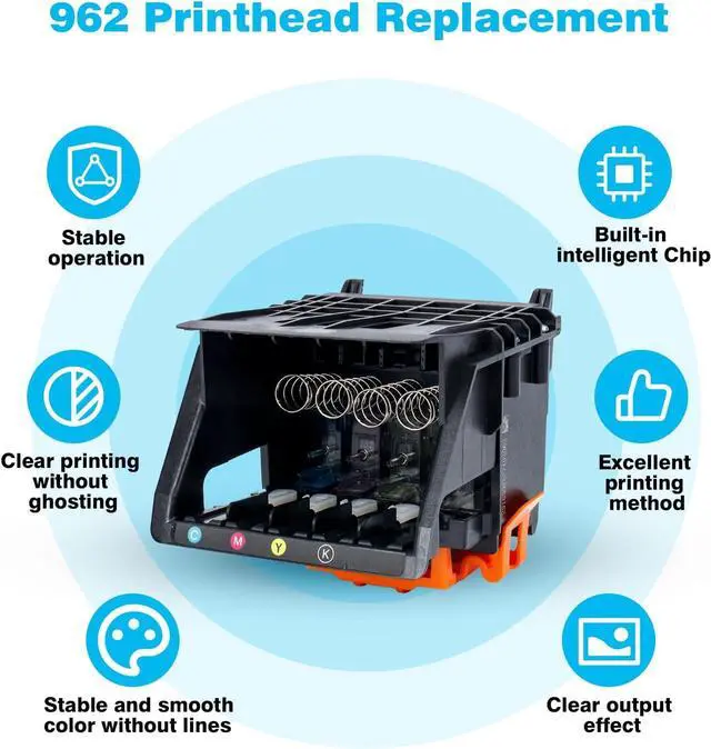 Clear and Vibrant Prints Our 962 printhead replacements are made with high quality ink and advanced technology for smooth, clog-free ink jetting, crisp prints and continuous lines!Experience sharp and vivid printouts for everyday documents, reports, letters, graphics, and photos with our enhanced printhead that delivers brilliant colors and fine details.