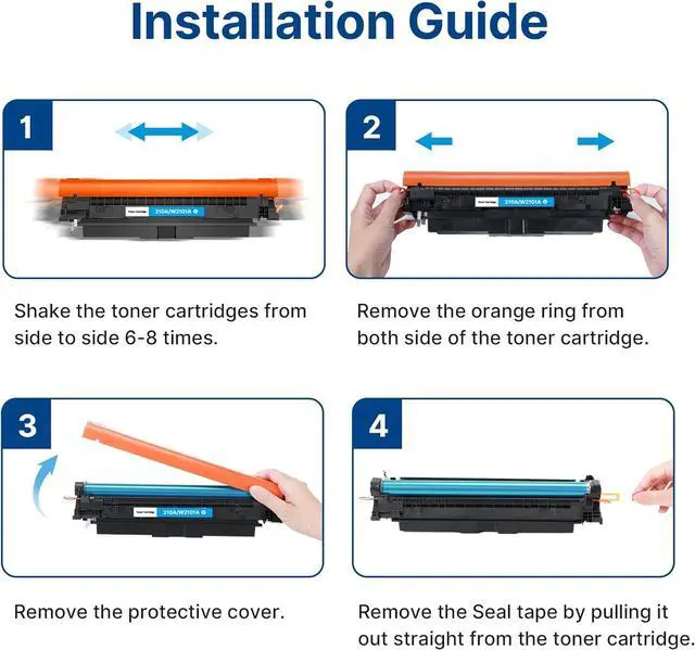 • 210A toner: Page Yield: Up to 2,000 Pages for 206X black and 1,800 pages for per 210A color (Letter/A4, at 5% coverage), compatible for hp 210a toner cartridges 4 pack