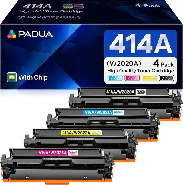 414A Toner Cartridge 4 Pack Compatible W2020A W2021A W2022A W2023A Toner Replacment for HP 414A Color Pro M454dn M454dw MFP M479fdn M479fdw Toner Printer (with Chip)