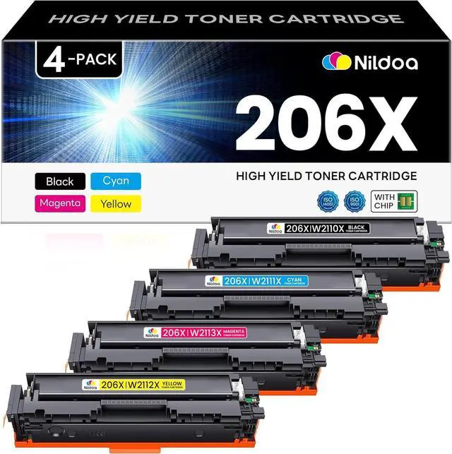Package Contents: Nildoa 4 Pack 206X Compatible Replacement for HP 206X W2110X W2111X W2112X W2113X Toner Cartridge High Yield with Chip (Black/Cyan/Yellow/Magenta)