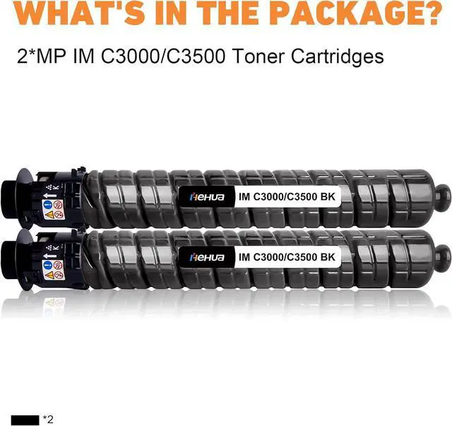 Package Included: Replacement for ricoh IM C3000 IM C3500 toner cartridges 2-Pack, 2 x IM C3000 IM C3500 black toner cartridges