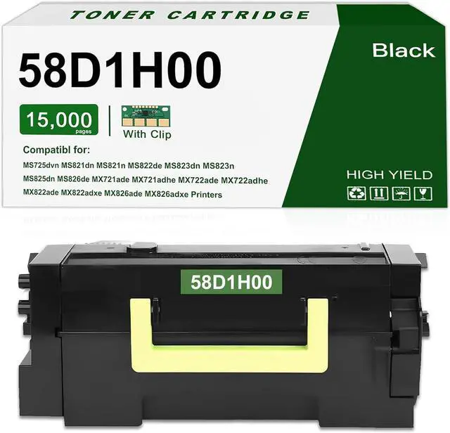 58D1H00 Toner Cartridge High Capacity (15,000 Pages) Compatible for MS725 MS821 MS822 MS823 MS825 MS826 MX721 MX722 MX725 MX822 MX826 Printer,1 Pack Replacement for Lexmark 58D1H00 Black Toner