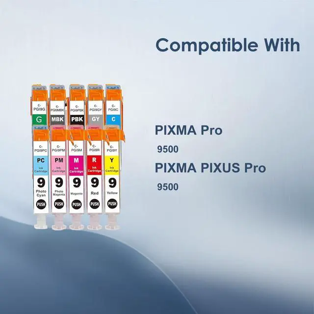 This ItemPGI-9 Ink Cartridge Replacement for Canon PGI9 PGI-9 PGI 9 Work with Pixma Pro 9500 Pro 9500-Mark II Printers (10 Pack-PBK, MBK, C, M, Y, PC, PM, R, GY, G)RecommendationsPGI-35 Black Ink Cartridge Replacement for Canon 35 36 PGI35 CLI36 Ink Work with Canon Pixma iP110 iP100 TR150 Printers (5BK) CLI-65 Ink Cartridges with Chip for PIXMA PRO 200 Printer - Compatible with Canon CLI-65 CLI65 Ink Cartridge Replacement for PIXMA PRO-200S Printer, 8 Color Pack (1BK, 1C, 1M, 1Y, 1PM, 1PC, 1GY, 1LGY) Inkjetcorner Compatible Ink Cartridges Replacement for CLI-8 for use with Pro9000 Mark II (8-Pack) CLI-8 Ink Cartridges PIXMA Pro9000 PIXMA Pro9000 Mark II Compatible with Canon CLI8 Ink Cartridges Combo Pack Compatible for CLI8 PIXMA Pro9000 PIXMA Pro9000 Mark II Pro9000 Pro 9000 Printers (8-Pack) Canon Computer Systems 1033B005 Value Pack Ink Pro 9500