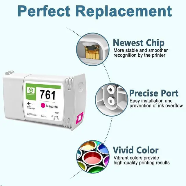 Superior Quality: This high-yield HP-761 ink cartridge uses the latest chip technology and high-quality pigment ink, with an anti clogging nozzle design and easy installation