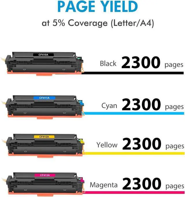 This ItemWOWTONER 410A Toner Cartridge Compatible Replacement for 410X CF410X CF411A CF412A CF413A Pro MFP M477FNW M477FDN M477FDW M452DN M452DW M452NW MFPM377DW M377DW 4-Pack (Black Cyan Yellow Magenta) Recommendations410X 410A Toner Cartridge Compatible Replacement for CF410A CF410X CF411X CF412X CF413X Pro MFP M477FNW M477FDN M477FDW M452DN M452DW M452NW MFPM377DW M377DW (Black Cyan Yellow Magenta, 4-Pack) TRUE IMAGE Compatible Toner Cartridge Replacement for HP 410X 410A CF410X CF411X CF412X CF413X to use with Color Laserjet Pro MFP M477fdw M477fdn M477fnw Pro M452dn M452nw M452dw Toner Ink (4 Pack) 410A Toner Cartridges High Yield Replacement for 410A Toner Cartridge CF410A CF411A CF412A CF413A, with Color Pro MFP M477fnw M477fdw M477fdn M452dn M452nw M477 Printer (Black Cyan Yellow Magenta) 410X Toner Cartridges 4 Pack High Yield Replacement for HP 410X 410A Color Pro M452dn M452dw M452nw MFP M477fdn M477fdw M477fnw Printer | CF410X CF411X CF412X CF413X TRUE IMAGE Compatible 410A Toner Cartridge Replacement for HP 410A 410X 410 CF410A CF411A CF412A CF413A Color Laserjet Pro MFP M477fnw M477fdw M477fdn M452dn M452nw M477 Printer (4-Pack)