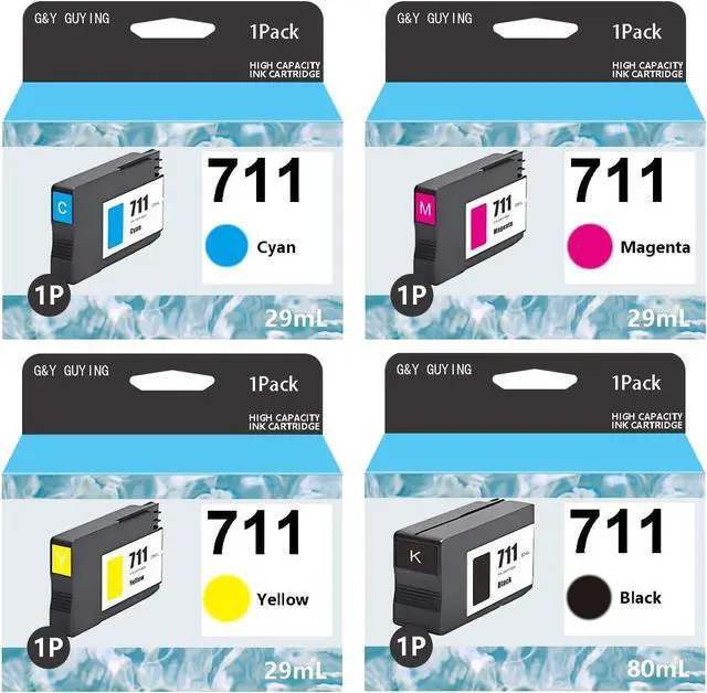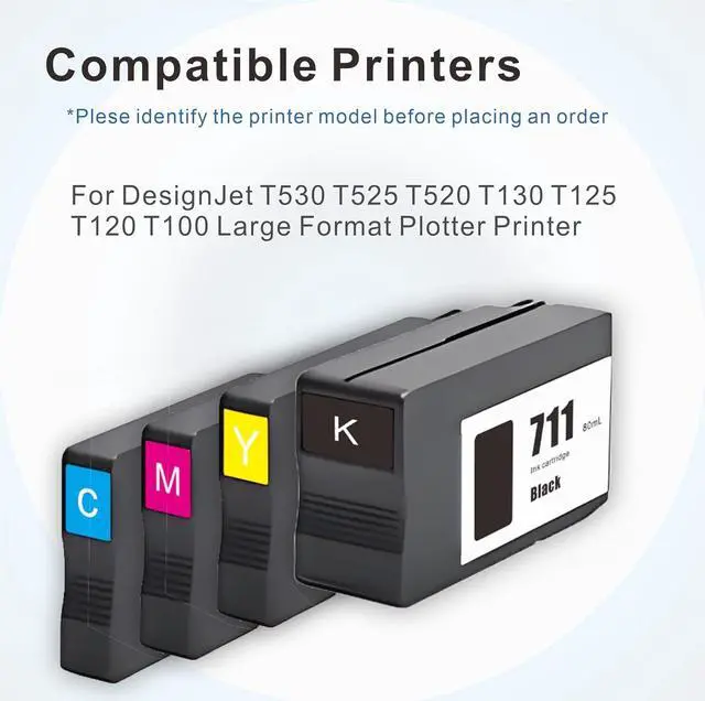 711 Ink Cartridge Bundle (4-Pack, 80-ml Black / 29-ml CZ130A CZ131A CZ132A CZ133A) Replacement for HP 711 Ink use with DesignJet T100 T120 T125 T130 T520 T525 T530 Printer