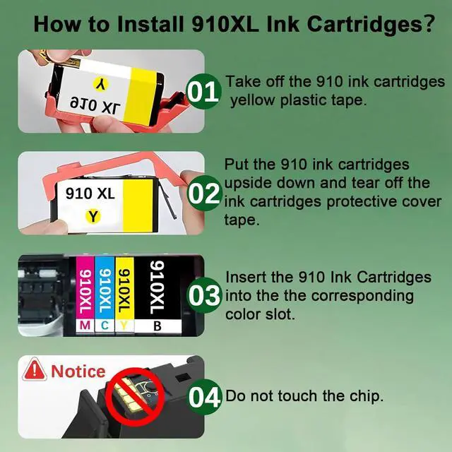 Because it equipped with the latest upgraded chip, ensuring that the 910XL ink cartridges are immediately recognized by your printer for seamless operation.
