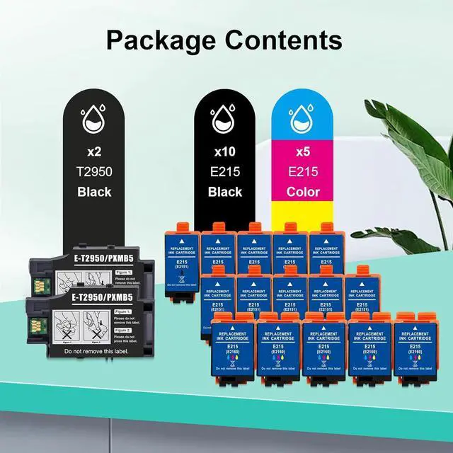This ItemCLREEGRI Remanufactured T215 Ink Cartridge 215 Replacement for Workforce WF-100 WF-110 EC-110 WF 100 110 EC 110 Printer (10 Black, 5 Tri-Color, 2 T2950 Maintenance Box)RecommendationsVoilaBella T215 215 Ink Cartridge Replacement for WF-100 WF-110 EC-C110 Printer (2 Black, 1 Tricolor, 3-Pack) LiTuhorse T215 215 Ink Cartridges Remanufactured Replacement for WF-100 WF-110 EC-C110 Mobile Printer, T215120-S T215530-S Pigment C/M/Y/K BCS (5-Pack: 3 Black, 2 Tri-Color) BeOne T215 215 Ink Cartridges Remanufactured Replacement for Epson WF-100 WF-110 WF100 WF110 Printers (1 Black, 1 Tri-Color) INKWAY Remanufactured T2950 Maintenance Box, WF-100 Maintenance Box, T2950 Maintenance Box Waste Ink Tank for Workforce WF-100 WF-110W, 5 Pack KSUMEI T2950 Maintenance Box T295000 Remanufactured for Workforce WF-100 WF-110 WF-100W EC-C110 Wireless Mobile Inkjet Printers (5-Pack)