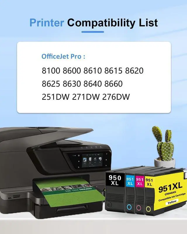 950XL 951XL Ink Cartridge 4-Pack Replacement for HP 950 951 Ink Cartridge OfficeJet Pro 251dw 276dw 8600 8610 8620 8100 8630 8660 8640 8615 Black Cyan Magenta Yellow