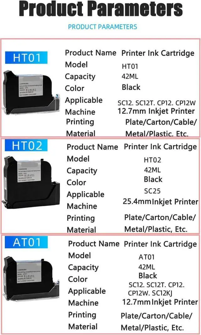 Note: ZHT01/ZAT01 is suitable for 12.7mm inkjet printer, ZHT02 is suitable for 25.4mm inkjet printer.