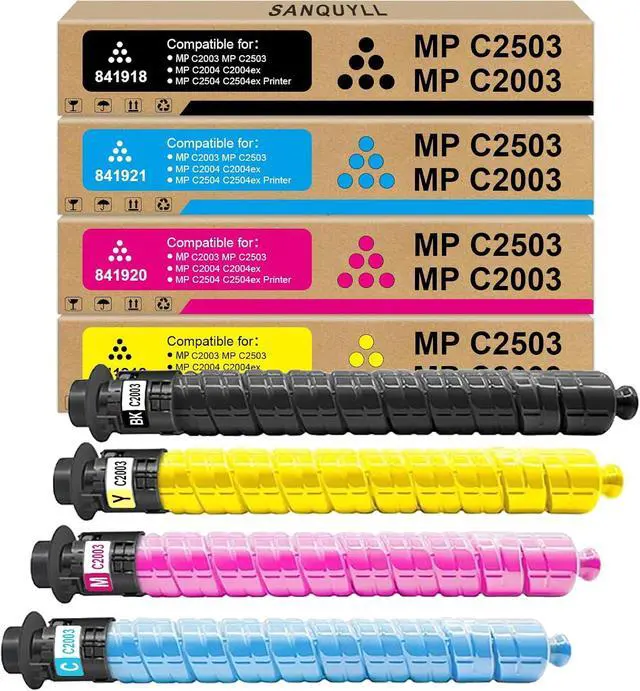 Choose SANQUYLL, and experience a new standard in printing solutionswhere every print is a testament to our excellence and your message comes to life with clarity and precision.Next page Toner Cartridge 4.5 out of 5 starsSANQUYLL MP C2003 Toner Cartridge Compatible for Ricoh MP C2003 MP C2503 MP C2004 C2004ex MP C2504 C2504ex Printer(4 Pack CMYK 15,000 Pages)