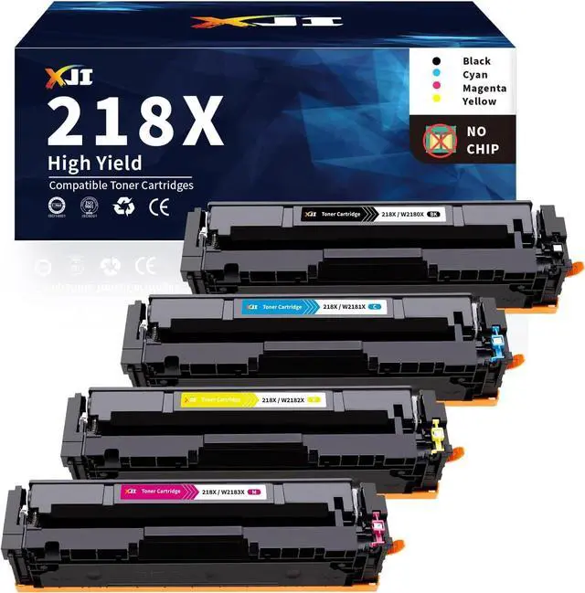 XJI 218X (No Chip) Compatible Toner Cartridges Set 4 Pack Replacement for HP 218 X A 218A Ink, for Color Laser Jet Pro 3201dw MFP 3301fdw 3301sdw 3301cdw Printer