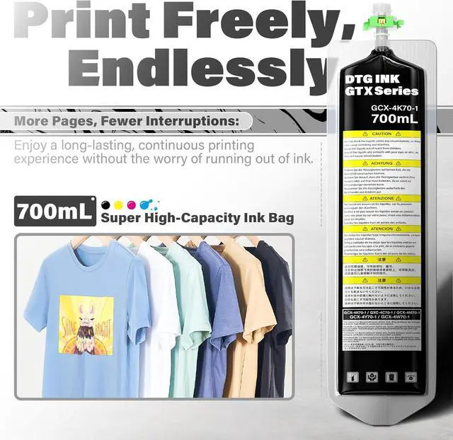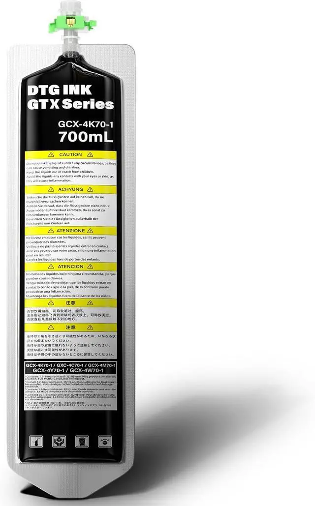 This ItemSpaceink DTG Textile Ink Bag Black (with Chip) 700ML Direct to Garment Printing for BrotherGTX GTX Pro GTX-422 GTX-423 GTX-425 PrinterRecommendationsDTG Textile Ink Bag Magenta (with Chip) 700ML Direct to Garment Printing for Brother GTX GTX Pro GTX-422 GTX-423 GTX-425 Printer DTG Textile Ink Bag Yellow (with Chip) 700ML Direct to Garment Printing for Brother GTX GTX Pro GTX-422 GTX-423 GTX-425 Printer DTG Textile Ink Bag White (with Chip) 700ML Direct to Garment Printing for Brother GTX GTX Pro GTX-422 GTX-423 GTX-425 Printer