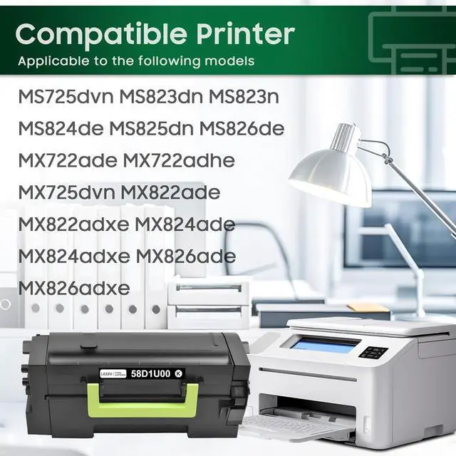 Previous pageNext page58D1U00 Toner Cartridge 1-Pack Remanufactured 58D1U00 Black Ultra High Yield Toner Replacement for Lexmark 58D1U00 Toner for MS725 MS823 MS824 MS825 MS826 MX722 MX725 MX822 MX824 MX826 Printer
