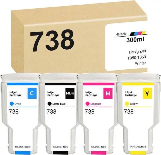 This ItemCompatible HP 738 DesignJet Ink Cartridges 300ml 498N8A 676M6A 676M7A 676M8A Replacement for HP 738 Ink Cartridge for DesignJet T950 & T850 Printer (4-Pack)Recommendations738 Ink Cartridge 300ml Compatible for DesignJet T850 T950 Printer Replacement for HP 738 Ink Cartridge 498N8A 676M6A 676M7A 676M8A 4-Pack (Black Cyan Magenta Yellow) 730 Ink Cartridges 300ML 6-Pack P2V68A P2V69A P2V70A P2V71A P2V72A P2V73A 730XL Ink Cartridge Replacement for HP 730 Ink Cartridges Works for DesignJet T1700 T2600 T1600 Printer 730 Ink Cartridges 300ml Replacement for HP 730 Ink Cartridge for DesignJet T1600 T1700 T2600 Printer Ink 6-Pack (P2V68A P2V69A P2V70A P2V71A P2V72A P2V73A) DesignJet 727 Ink Cartridges 300-ml (6-Pack) Replacement for HP 727 Ink Cartridges for DesignJet T920 T930 T1500 T1530 T2500 T2530 Printer, C1Q12A F9J79A F9J76A F9J77A F9J78A F9J80A