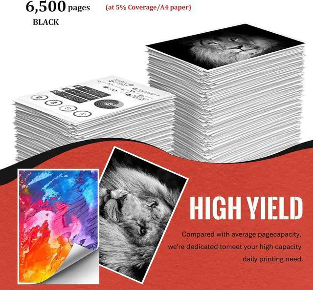 Each Black toner cartridge yields to 6,500 pages with 5% coverage.