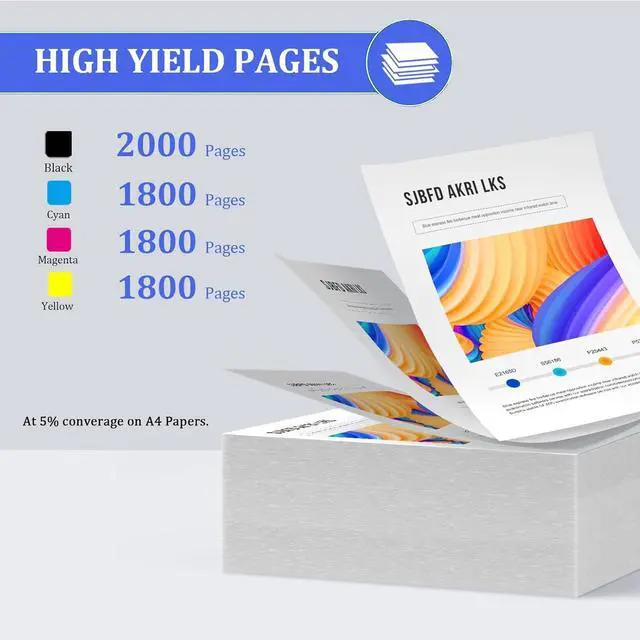 Superior Compatibility: 220A Toner Cartridges Designed specifically for HP Color Pro 4202dw MFP 4302fdw printers, these 220A cartridges deliver outstanding results with clear fonts and vivid colors. Package Contents: · 1 X 220A W2200A black toner cartridge · 1 X 220A W2201A cyan toner cartridge · 1 X 220A W2203A magenta toner cartridge · 1 X 220A W2202A yellow toner cartridge · 1 X Installation and user guide for HP 220A toner cartridge High Volume Prints: More capacity for HP 220A toner cartridges, 2,000 Pages per black/W2200A toner cartridge, 1,800 Pages per cyan/magenta/yellow ( W2201A/ W2202A/W2203A) toner cartridge (at 5% coverage on A4 papers). This provides exceptional value for money and reduces the frequency of cartridge replacements. Product Advantages: · Utilizing high-quality resin carbon powder, our 220A toner cartridges feature finely uniform carbon powder particles, vibrant color reproduction, smooth printing, minimal toner consumption, effectively extending the lifespan of your printer. · Easy to install, with installation instructions included in the package to ensure accurate installation. · Equipped with the latest counting chip, ensuring compatibility with your printer and precise monitoring of toner levels. · Secure packaging: Products are packaged with bubble bags, foam, and cardboard boxes to ensure safe transportation without damage. Warm Tip: · Since the models vary in different regions, please confirm your original toner cartridge model and printer model and send them to us. · Make sure not to touch the chip on the toner cartridge for optimal performance. · Please note that if prompted with a non-original message, simply click 'OK' or 'Continue' to proceed and start using the toner cartridge.