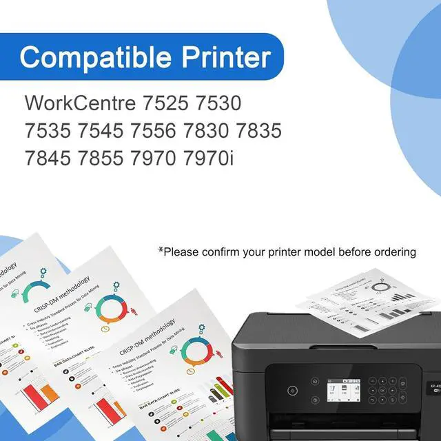 Applicable printer models: Compatible for Xerox WorkCentre 7525 7530 7535 7545 7556 7830 7835 7845 7855 7970 7970i printers.