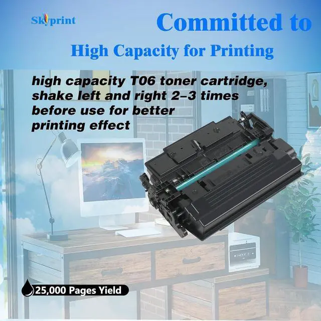 SkyPrint T06 toner cartridges come with intelligent chips that automatically recognize and provide printing, Not damaging the machine,Shake the toner cartridge horizontally 2-3 times before use to evenly distribute the toner,providing you with better clear and natural printing effects