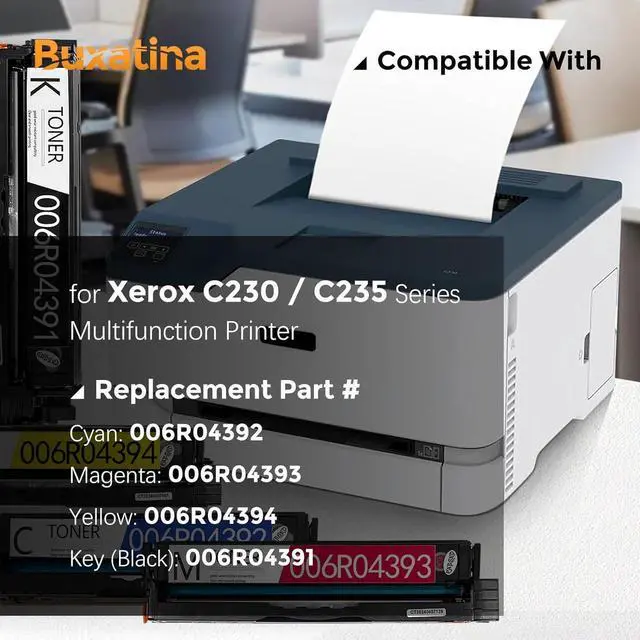 Buxatina C230 C235 Toner Cartridge with New-Chip for Xerox C230 C235 Printer Replace# 006R04391 006R04392 006R04393 006R04394 Real 3500 Pages per Black 2500 Pages per Cyan/ Magenta/Yellow